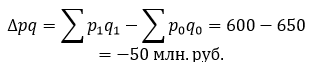 Таким образом, за период за счет изменения цен и физического объема реализации товарооборот уменьшился на 8% или на 50 млн. руб.