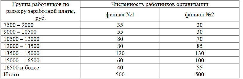 «Имеются следующие данные о распределении работников организации по размеру заработной платы за месяц. Определите для каждого филиала модальный уровень заработной платы.»