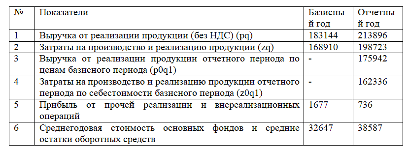 Имеются следующие данные о результатах производственной и финансовой деятельности предприятия в текущих ценах, тыс. руб.