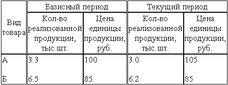 Имеются следующие данные за два периода:Определить: 1. Индексы объема реализованной продукции и цен по каждому товару (индивидуальные индексы). 2.Общие индексы: