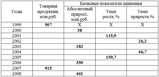«Используя взаимосвязь показателей динамики определите недостающие уровни ряда и базисные показатели динамики. Годы Товарная продукция, млн.руб.»