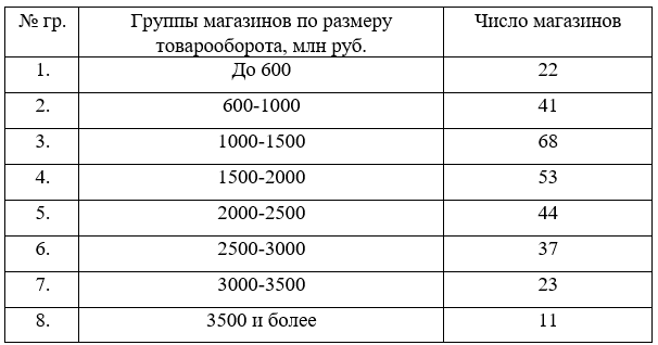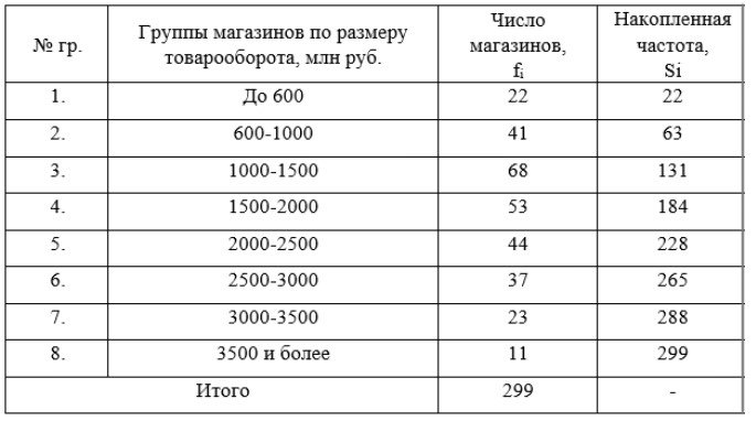 «Известно распределение магазинов по размеру товарооборота. Определить моду, медиану,первый, третий квартиль, второй, пятый, восьмой дециль.»