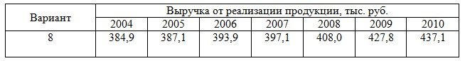 На основании данных о выручке от реализации продукции за период 2004-2010 гг., представленных рядом динамики, провести аналитическое выравнивание ряда по прямой, построить график