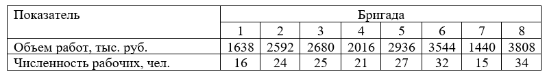 По отдельным бригадам строительной организации имеются следующие данные за август отчетного года: