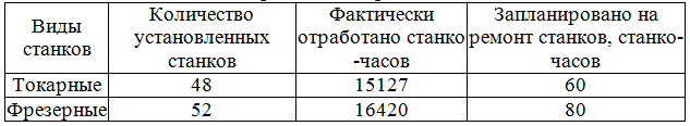 «Определить календарный, режимный, располагаемый (плановый) и фактический фонды станочного времени по 2 видам станков и коэффициенты использования станочного времени за апрель»
