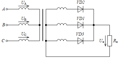 Рисунок 5.1 ‒ Схема трехфазного неуправляемого выпрямителя с нулевым выводом