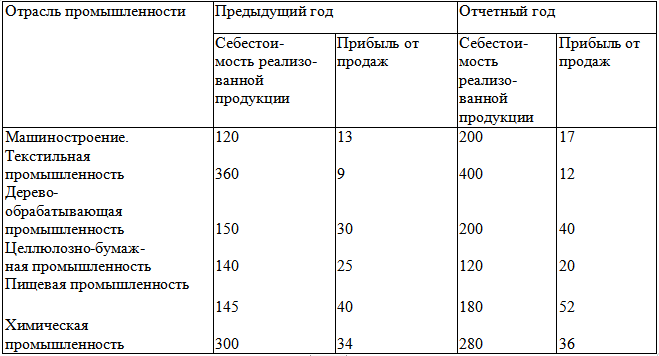 «Определите коэффициенты динамики рентабельности реализованной продукции для машиностроения и текстильной промышленности, а также для этих отраслей вместе.»