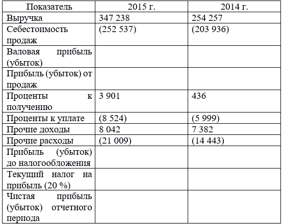 Отчет о прибылях и убытках предприятия представлен в таблице.