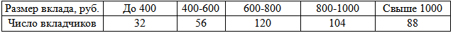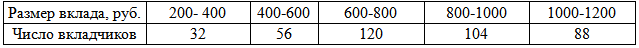 По данным выборочного обследования произведена группировка вкладчиков по размеру вклада в Сбербанк города. Определите: 1) размах вариации; 2) средний размер вклада; 3) среднее линейное отклонение;
