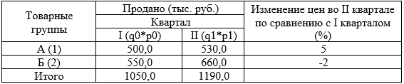 1) индивидуальные индексы цен, физического объема товарооборота и стоимости реализованных товаров;