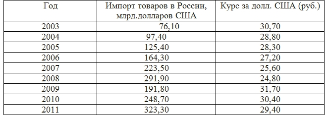 По имеющимся данным: определите направление и тесноту связи между импортом товаров в России и курсом доллара США с помощью: коэффициента Фехнера