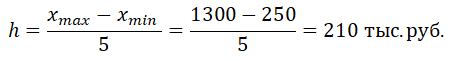 где xmax, xmin максимальное и минимальное значения основных фондов.