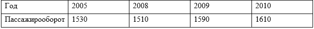 2005 г. – 1530: 2008 г. - 1510; 2009 г. – 1590; 2010 г. – 1610.