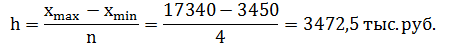Определим ширину интервала:
