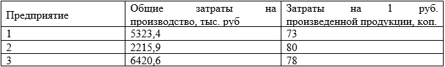 «Производительная деятельность одного из отделений корпорации за месяц характеризуется следующими данными:Определите средние затраты на 1 руб. произведенной продукции в целом по отделению»