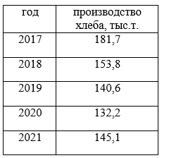 Производство хлеба и хлебобулочных изделий в Калужской области характеризуется следующими данными: