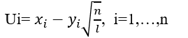 Для проверки гипотезы о равенстве средних двух выборок строится искусственная выборка U, объем которой равен наименьшему из двух объемов n, l по формуле: