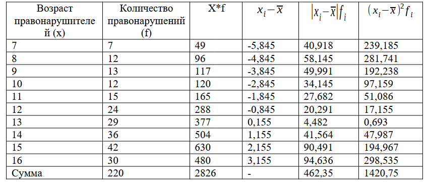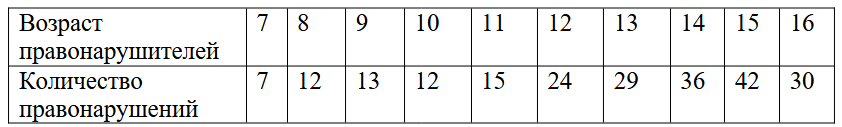 «Распределение подростковой преступности по одной из областей России характеризуется следующими данными: Вывод: совокупность однородна, в среднем возраст правонарушителей отклоняется от среднего значения в 13 лет»