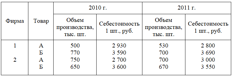 Себестоимость и объем идентичной продукции двух фирм характеризуется следующими показателями: