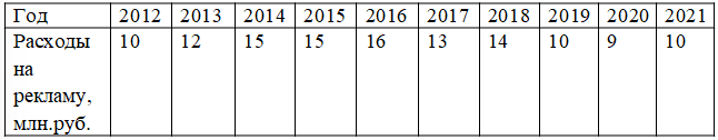 Расходы на рекламу в коммерческих компаниях города Ярославля за последние 10 лет имеют следующие размеры: