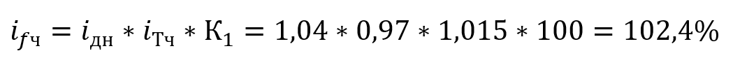 Индекс среднего числа дней работы на одного списочного рабочего 102%;