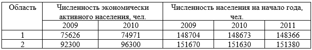 «Рынок труда в двух областях характеризуется следующими данными: Рассчитать по общей численности населения и по экономически активному населению»