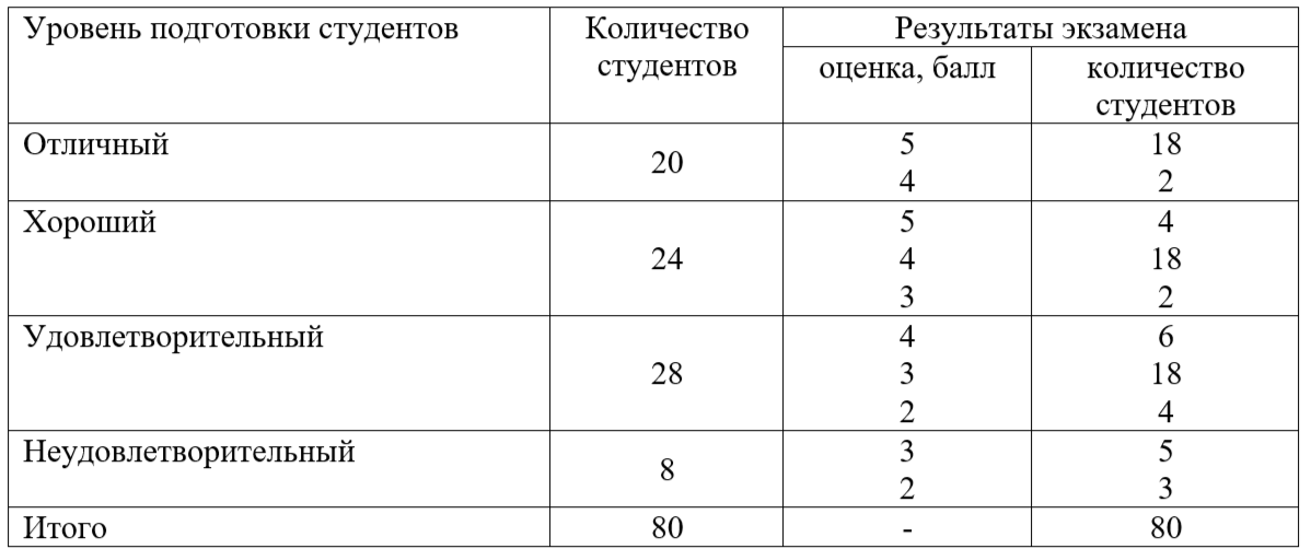 С целью изучения зависимости успеваемости студентов от уровня их подготовки сдающие экзамен по курсу были распределены на четыре группы (табл. 23).