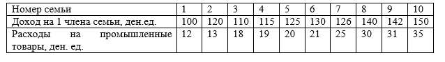 При обследовании 10 семей получены данные о доходах и расходах на непродовольственные товары за месяц: