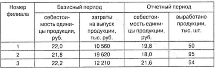 Имеются следующие данные по трём филиалам организации, выпускающим одноимённую продукцию: