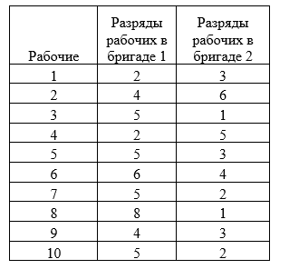 В механическом цехе завода в десяти бригадах работает сто человек. В целях изучения квалификации рабочих была проведена 20% серийная бесповторная выборка, в которую вошли две бригады.