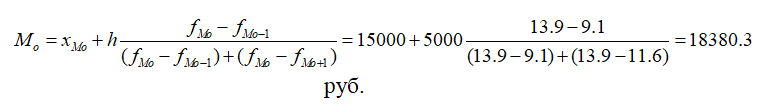 Мода (модальный интервал с наибольшей частотой, у нас - :