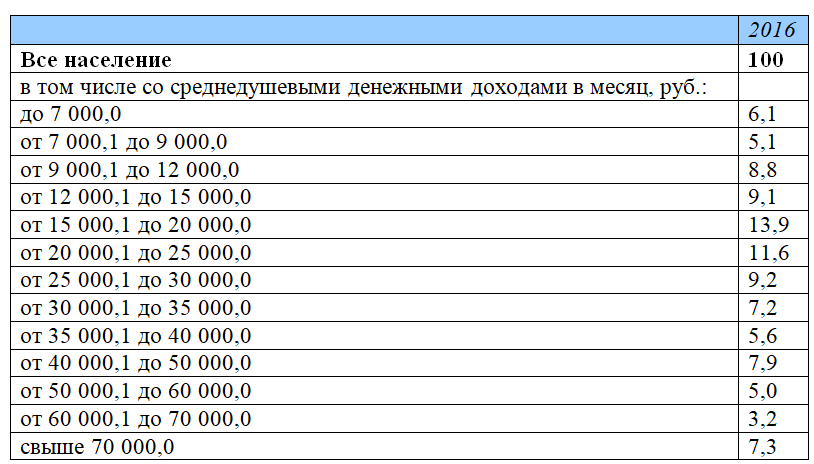 Имеются следующие данные о распределении населения по величине среднедушевых денежных доходов в 2016 г.