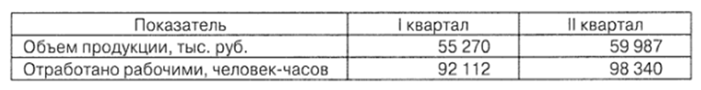 Определим индексы среднечасовой, среднедневной и среднеквартальной производительности труда: