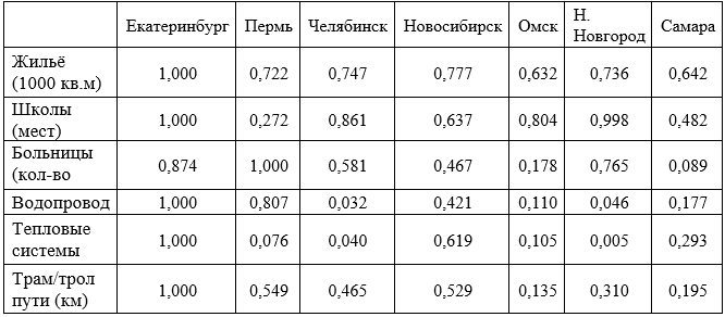 1. Чтобы сравнивать разные параметры необходимо привести их к одной размерности, для чего разделим каждый параметр на его максимальное значение: