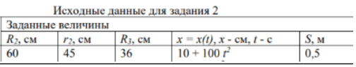 По заданному уравнению прямолинейного поступательного движения груза 1 определить скорость, а также касательное, нормальное и полное ускорения точки М механизма в момент времени t1, когда путь, пройденный грузом, равен S.