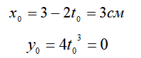 2. Положение точки на траектории в момент t=0: