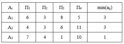 По критерию Вальда за оптимальную принимается чистая стратегия, которая в наихудших условиях гарантирует максимальный выигрыш, т.е.