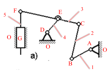 Механизм - плоский, состоящий из n= 5 подвижных звеньев, соединенных между собой и неподвижным звеном О (стойкой) , 7-ю низшими КП, V-ого класса (одноподвижные), т.е. р5 = 7, из которых одна...