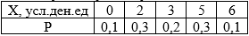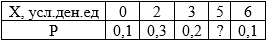 Сумма вероятностей равна 1, поэтому , значит, величина Х распределена по следующему закону