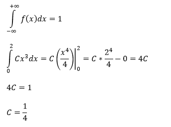 Плотность вероятности непрерывной случайной величины X, задана следующим выражением: f(X)={(Cx^3,если 0<x<2@0,при других x)┤ Найти постоянную C, функцию распределения F(X), математическое ожидание M(X) и дисперсию D(X) случайной величины X.