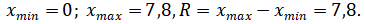 Найдем минимальное и максимальное значение, размах выборки: