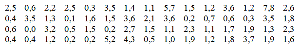 Выполним группировку значений случайной величины X, разбив выборку на равные интервалы. Количество интервалов определим по формуле Стерджесса: