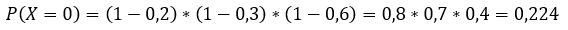 Случайная величина X может принимать следующие значения: 0,1,2,3 объекта, с которых поступит сигнал.