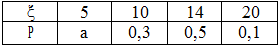 Случайная величина задана таблицей распределения. Найти: параметр а; Mξ, Dξ, σξ, Vξ, хmod; функцию распределения F(x) и построить ее график; вероятность.