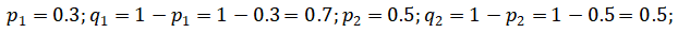 «Турнир по стрельбе между игроками И1 и И2 проходит следующим образом: первым стреляет игрок И1 и попадает в мишень с вероятностью P1. Если И1 не попал, стреляет игрок И2, который может попасть с вероятностью P2.»