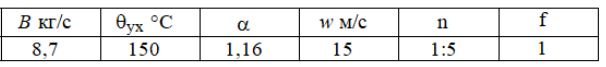 Определить размеры коробов уходящих газов после парового котла сжигающего сернистый мазут (состав: Sр=1,4%; Cр = 83,8 %; Hр = 11,2 %; Oр = 0,5 %; Wр = 3,0 %; Ap = 0,1 %). Расход мазута B, температура уходящих газов при избытке воздуха a. Принять скорость уходящих газов w, соотношение сторон газохода n 1:4, количество коробов f.