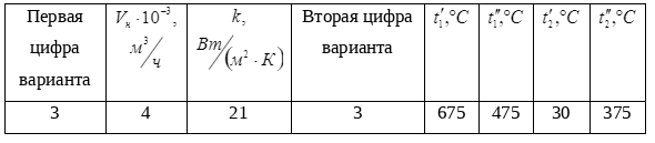 Определить поверхность нагрева рекуперативного газовоздушного теплообменника при прямоточной и противоточной схемах движения теплоносителей, если объемный расход нагреваемого воздуха при нормальных условиях ,