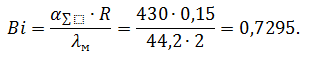 В печь, температура которой tпеч = 1300 °С все время поддерживается постоянной, помещают длинный стальной цилиндр диаметром d = 0,15 м. В момент загрузки в печь температура металла была равномерна по всему сечению и составляла tнач = 15°С. Физические свойства стали приняты постоянными, не изменяющимися с температурой: коэффициент теплопроводности λм = 44,2 Вт/(м*К), теплоемкость см = 695 Дж/(кг*К) и плотность ρм = 7800 кг/м3.