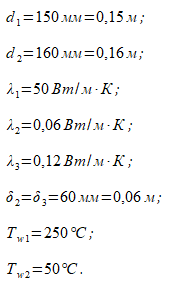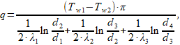 1. Определим линейную плотность теплового потока через трехслойную цилиндрическую стенку: