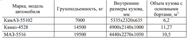 Осуществить оптимальный, по геометрическим параметрам кузова, выбор автомобиля-самосвала для перевозки заданного объема груза определенного вида.